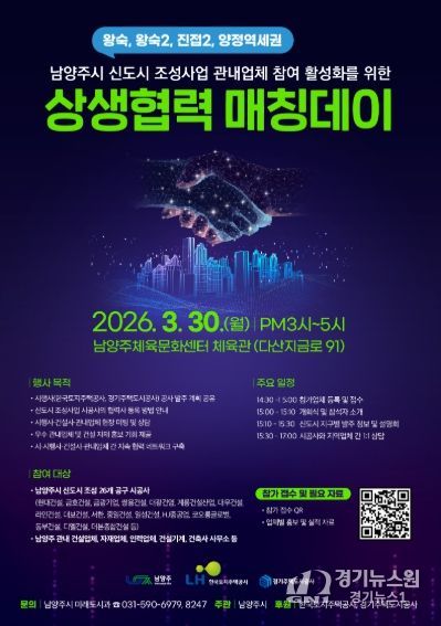 시 관계자는 “이번 자리를 통해 시행사·건설사와 관내 기업이 서로를 신뢰할 수 있는 파트너로 인식하는 자리가 되길 바란다”며 “남양주가 성장하는 만큼 우리 지역 기업도 함께 성장할 수 있도록 행정적 가교 역할을 끝까지 수행하겠다”고 전했다.