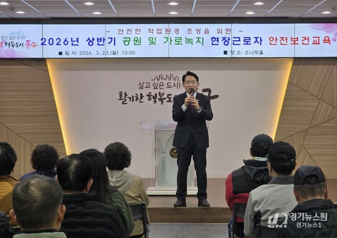 [경기뉴스원/경기뉴스1] | 인천 동구는 지난 23일 구청 소나무홀에서 공원 및 가로녹지 현장근로자의 안전사고 예방과 안전의식 제고를 위해 산업안전보건교육을 실시했다고 밝혔다.
