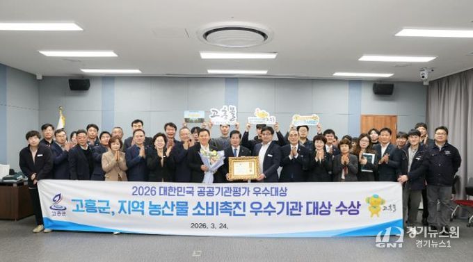 [경기뉴스원/경기뉴스1] | 고흥군은 지난 24일 국회의원회관 대회의실에서 열린 ‘2026년 대한민국 공공기관평가 시상식’에서 지역 농산물 소비 촉진 우수기관으로 선정돼 우수대상을 수상했다고 밝혔다.