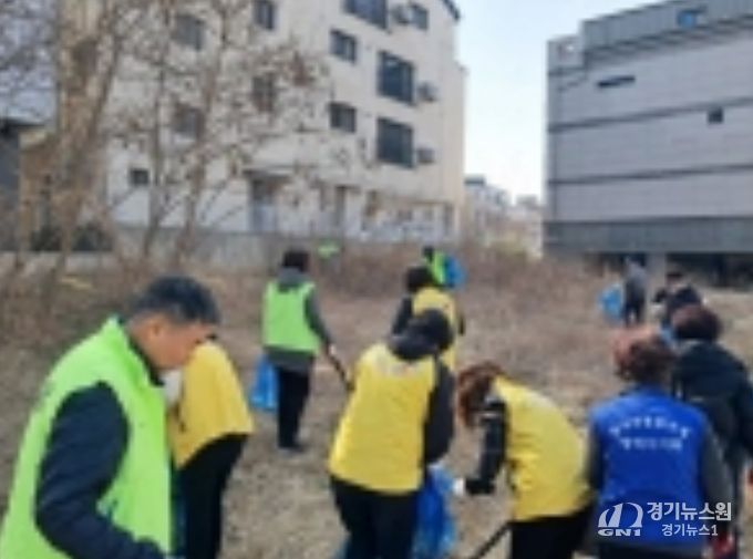 [경기뉴스원/경기뉴스1] | 평택시 안중읍 행정복지센터가 지난 24일 송담택지지구 쓰레기 무단투기 취약지역에서 새봄맞이 대청소와 함께 중동 전쟁 여파에 따른 에너지 위기 극복을 위한 ‘평택 에너지 지킴이 3.3.3 운동’캠페인을 진행했다.
