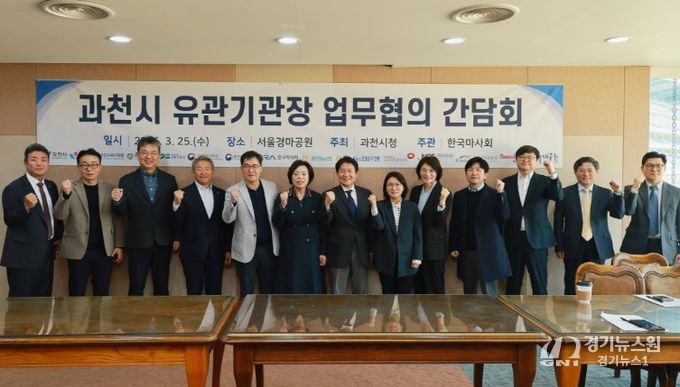 [경기뉴스원/경기뉴스1] | 과천시는 25일 한국마사회 서울경마공원에서 관내 주요 관계기관장이 참석한 가운데 업무협의 간담회를 열고, 기관 간 협력 방안을 논의했다.