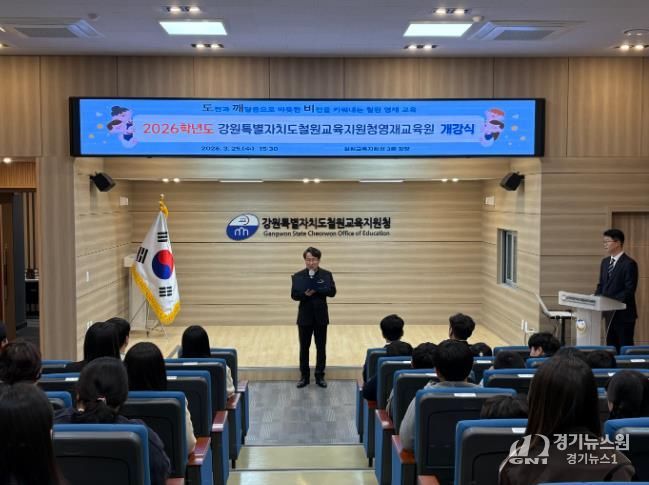 [경기뉴스원/경기뉴스1] | 강원특별자치도철원교육지원청은 3월 25일 오후 3시 30분, 철원교육지원청 3층 강당에서 학생과 학부모, 지도교사 등 100여 명이 참석한 가운데 ‘2026학년도 강원특별자치도철원교육지원청영재교육원 개강식’을 개최했다.