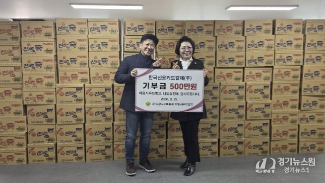 [경기뉴스원/경기뉴스1] | 의왕시는 한국신용카드결제(주)가 3월 25일, 관내 취약계층 지원을 위해 500만원 상당의 물품(라면 등)을 의왕시푸드뱅크에 기부하며 지역사회에 따뜻한 마음을 전했다고 밝혔다.