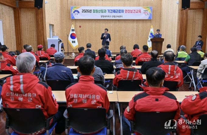 [경기뉴스원/경기뉴스1] | 양평군은 지난 27일 쉬자파크 산림교육센터에서 정원산림과 소속 기간제근로자 65명을 대상으로 산업재해 예방과 안전의식 강화를 위한 정기 안전보건교육을 실시했다.