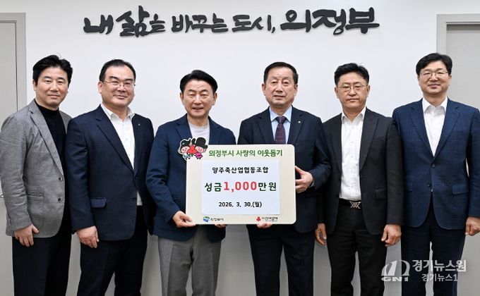 [경기뉴스원/경기뉴스1] | 의정부시는 3월 30일 양주축산업협동조합(조합장 이후광)이 저소득층을 위한 성금 1천만 원을 기탁했다고 밝혔다.