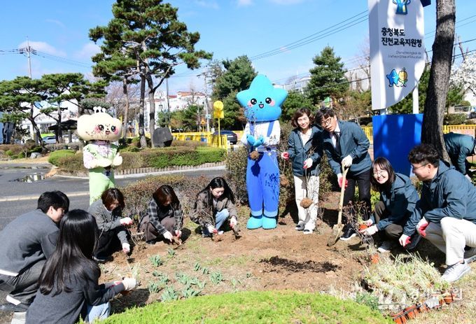이날 행사에는 지역사회와의 소통 창구 역할을 하는 충청북도교육청 홍보대사와 청렴 협약서 교환을 통해 청렴의 가치를 널리 확산하고자 하는 의지를 다졌으며, 이후 전 직원 및 각 단체 대표 등 80여 명이 참여해 청사 화단에 꽃나무를 심어 쾌적하고 아름다운 쉼터 공간을 조성했다.