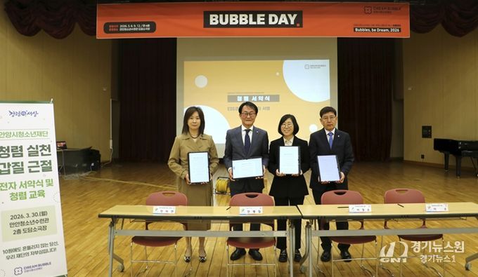 [경기뉴스원/경기뉴스1] | 안양시청소년재단은 지난 30일 만안청소년수련관 도담소극장에서 전 직원을 대상으로 내부 커뮤니케이션 행사 ‘버블데이(BUBBLE DAY)’를 운영하며 조직 소통과 청렴문화 확산에 나섰다.