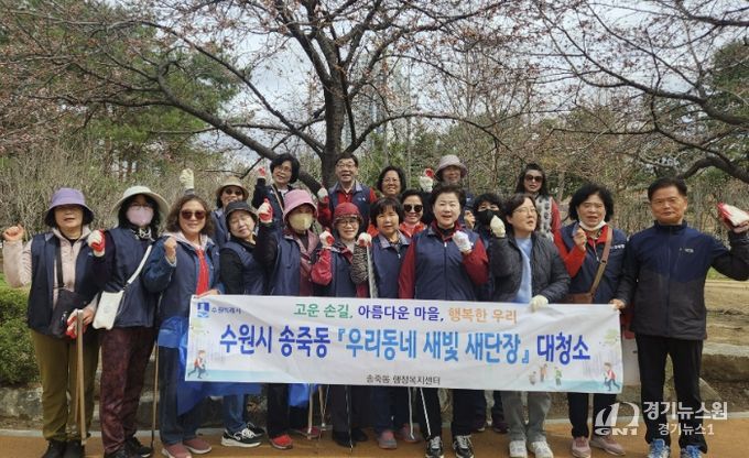 [경기뉴스원/경기뉴스1] | 수원시 장안구 송죽동은 지난 31일, 만석거 새빛축제를 앞두고 방문객들에게 깨끗하고 안전한 축제 환경을 제공하기 위해 만석거 일원에서 대청소를 실시했다.