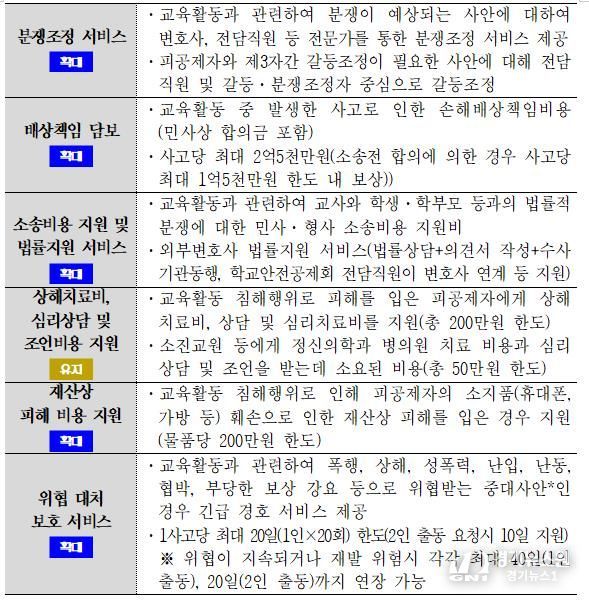 이번 교원 보호 공제는 교육활동 침해 발생 시 초기 대응부터 사후 처리까지 전 과정에 걸쳐 교원을 보호하는 데 중점을 뒀다.