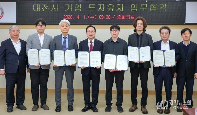 [경기뉴스원/경기뉴스1] | 대전시는 1일 시청 중회의실에서 국내 유망기업 5개 사와 총 550억 원 규모의 신규 투자와 대전 이전에 대한 업무협약(MOU)을 체결했다.