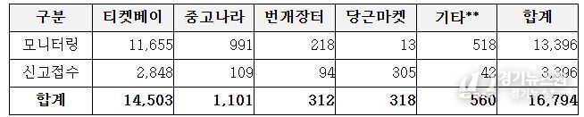 2026년 2월부터 3월까지 프로야구 암표 신고·모니터링 결과, 약 1만 6천여 건이 확인됐다. 특히 개막전(3. 28.~29.) 전후로는 정가 대비 최대 약 13배 고액 거래, 동일 계정 다량 좌석 확보 및 재판매 등 조직적 거래 정황이 다수 확인됐다. 이 중 다량·연석 판매, 과도한 웃돈 거래, 동일 계정 반복 거래 등 부정거래 의심 사례를 분석․파악해 경찰청에 수사를 의뢰했다.