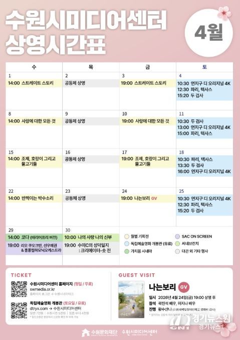 수원시미디어센터 관계자는 “이번 업무협약을 통해 누구나 차별 없이 문화를 접하고 누릴 수 있는 환경을 조성하고자 한다”며, “4월 장애인의 날을 맞아 운영하는 기념 프로그램을 시작으로, 배리어프리 영화 상영을 지속 확대해 나가겠다”고 밝혔다.