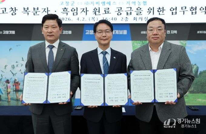 [경기뉴스원/경기뉴스1] | 고창군이 지난 2일 오후 군청2층 회의실에서 고창군·㈜지비엠에스·지역농협 5개소와 ‘고창 복분자·흑임자 원료 공급 및 상생발전 업무협약(MOU)’을 체결했다.
