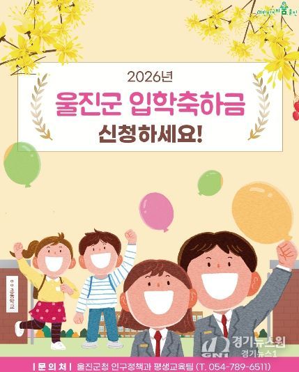 [경기뉴스원/경기뉴스1] | 울진군은 학부모의 교육비 부담을 경감하고 보편적 교육복지를 실현하기 위해‘2026학년도 초·중·고등학교 신입생 입학축하금’1차분을 4월 3일 지급했다.