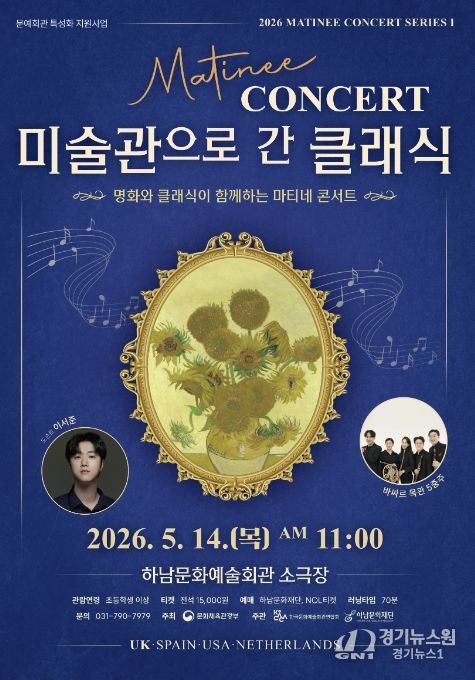 [경기뉴스원/경기뉴스1] | 하남문화재단은 명화와 클래식을 함께 만나는 공연 시리즈 '미술관으로 간 클래식'을 오는 5월부터 11월까지 하남문화예술회관 소극장에서 총 4회에 걸쳐 선보인다.