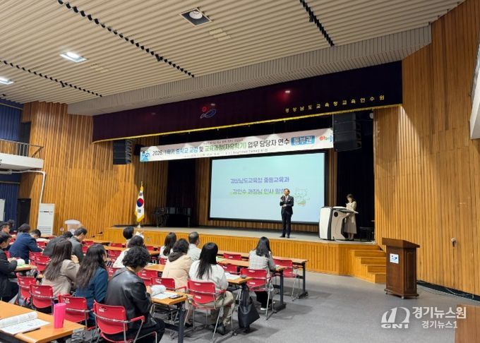 [경기뉴스원/경기뉴스1] | 경상남도교육청이 7일과 8일 양일간 권역별(동부권 교육연수원, 서부권 미래교육원)로 ‘2026학년도 1학기 중학교 교감 및 교육과정 업무 담당자 연수’를 연다.