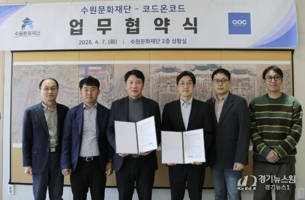 [경기뉴스원/경기뉴스1] | 수원문화재단은 지난 7일 수원시 어린이도서관의 ‘AI 기반 그림책 검색 서비스 운영’을 위해 코드온코드(대표이사 송명수)와 업무협약을 체결했다.