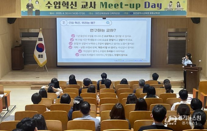 [경기뉴스원/경기뉴스1] | 대전시교육청은 4월 10일 대전진로융합교육원에서 중등 교원 70여 명을 대상으로 교사의 자발적인 수업 연구 노력을 지원하기 위한 ‘수업 혁신 교사 Meet-up Day’를 개최했다.