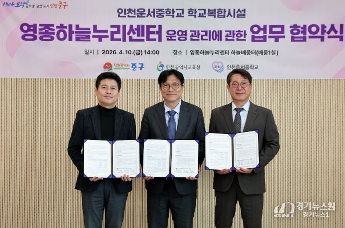 [경기뉴스원/경기뉴스1] | 영종구 출범 원년을 맞아 올해 새롭게 개관한 ‘영종하늘누리센터’의 안정적·체계적 운영을 위해 인천시 중구가 인천시 교육청, 운서중학교와 손을 맞잡았다.