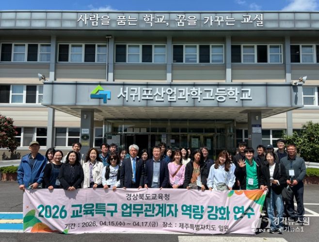 [경기뉴스원/경기뉴스1] | 경북교육청은 15일부터 17일까지 2박 3일간 제주특별자치도 일원에서 교육특구 시범지역 및 학교지원센터 업무 관계자 63명을 대상으로 역량 강화 연수를 실시했다고 밝혔다.