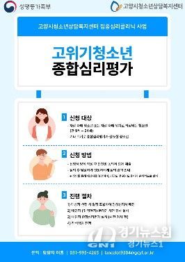 [경기뉴스원/경기뉴스1] | 고양시청소년재단 청소년상담복지센터는 2026년 신규사업 ‘고위기청소년종합심리평가’를 운영한다고 16일 밝혔다.