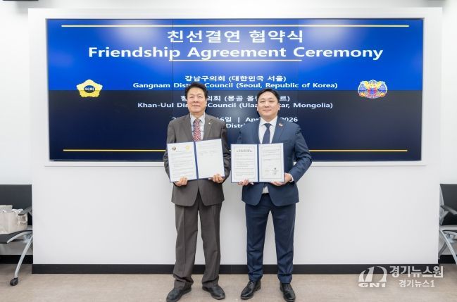 [경기뉴스원/경기뉴스1] | 강남구의회는 16일 오전 강남구의회를 내방한 몽골 항올구시민대표회의(의장 바트-오르길) 대표단을 접견하고 협약을 체결했다.