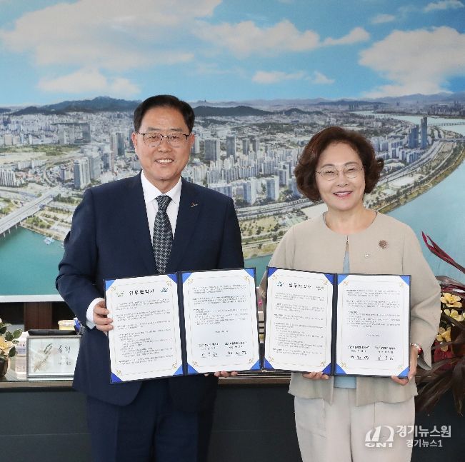 [경기뉴스원/경기뉴스1] | 서울 용산구는 16일 구청장실에서 경기도 양주시와 옛 용산가족휴양소 부지(양주시 소재) 공공시설 조성 협력을 위한 업무협약을 체결했다. 이날 협약식에는 박희영 용산구청장과 강수현 양주시장을 비롯한 양측 관계자들이 참석했다.