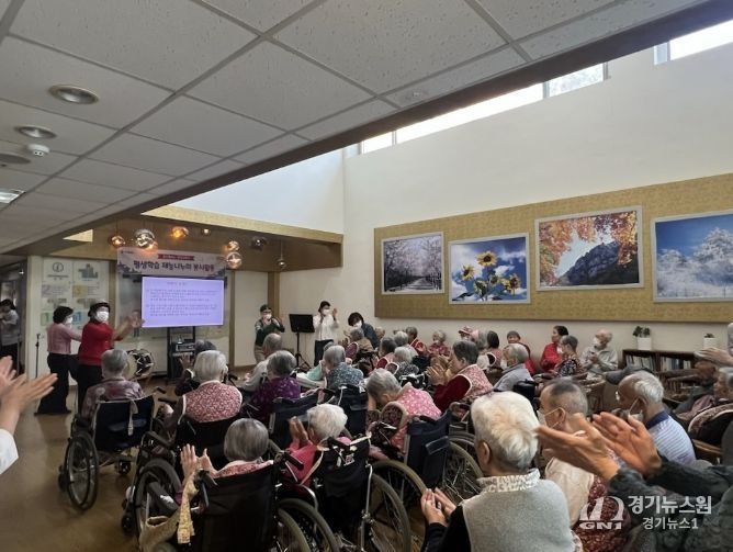 [경기뉴스원/경기뉴스1] | 용인특례시는 평생학습관 재능나누미 교육 수강생들이 16일 처인구 역북동에 있는 대한간호노인요양원을 찾아 노인들을 대상으로 인지기능 향상을 위한 프로그램을 진행했다고 17일 밝혔다.