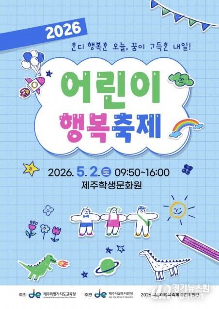 [경기뉴스원/경기뉴스1] | 제주시교육지원청은 제104회 어린이날을 맞이하여 5월 2일 제주학생문화원에서 ‘2026 어린이 행복 축제’를 개최한다.