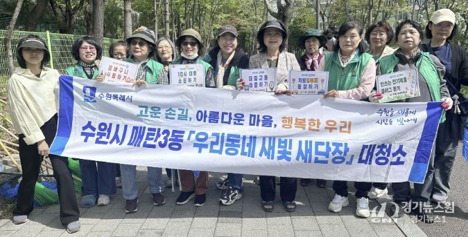 [경기뉴스원/경기뉴스1] | 수원시 영통구 매탄3동은 지난 4월 16일 매탄3동 새마을부녀회가 지역사회의 쾌적한 환경 조성과 공동체 의식 함양을 위해 환경정화 활동에 나섰다고 밝혔다.