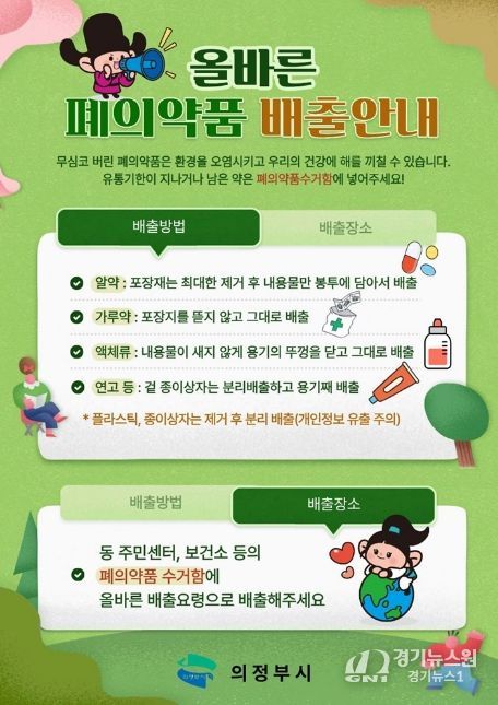 [경기뉴스원/경기뉴스1] | 의정부시는 일상생활에서 발생하는 유해 폐기물인 폐의약품을 안전하게 수집‧처리하기 위해 관내 동 주민센터와 공동주택 등 총 31개소에 ‘폐의약품 수거함’을 설치했다.