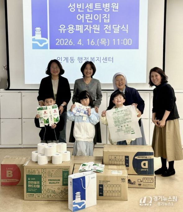 [경기뉴스원/경기뉴스1] | 수원시 팔달구 인계동은 지난 16일 오전, 성빈센트병원 어린이집으로부터 아이들이 정성껏 모은 유용 생활 폐자원을 전달받았다고 밝혔다.