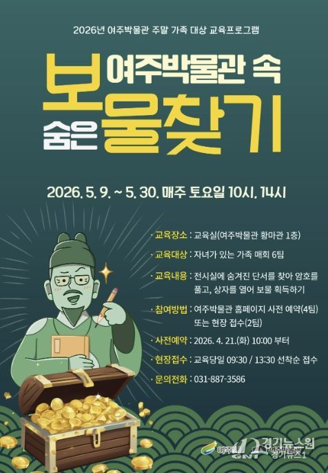 [경기뉴스원/경기뉴스1] | 여주시 여주박물관은 가정의 달 5월을 맞아 가족이 함께 지역 문화유산의 가치를 즐겁게 배우고 체험할 수 있는 ‘여주박물관 속 숨은 보물찾기’를 운영한다.