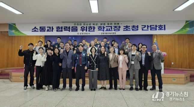 [경기뉴스원/경기뉴스1] | 군포의왕교육지원청과 군포경찰서는 4월 16일 군포경찰서 4층 ‘수리관’에서 중학교 교장을 대상으로 학생 안전을 위한 간담회에 참여하여 학교폭력예방 및 학교장의 안전 관리 지원에 협력과 소통을 강화하기로 했다.