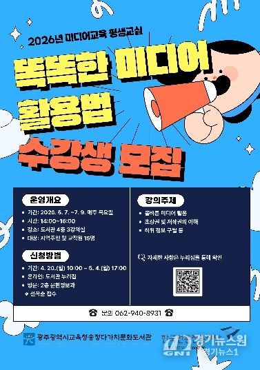 [경기뉴스원/경기뉴스1] | 광주시교육청송정다가치문화도서관은 오는 5월 7일부터 7월 9일까지 ‘2026년 미디어교육 평생교실’을 운영한다.