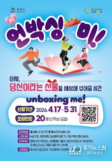 [경기뉴스원/경기뉴스1] | 평택시 청년지원센터는 4월 17일부터 5월 31일까지 평택시에 거주하는 사회활동이 줄어 사람과의 만남이 거의 없거나 집 밖으로 나오기 힘든 청년의 일상 회복과 사회 참여 촉진을 위해 실시하는 지원사업 '언박싱 미!' 참여자를 모집한다.