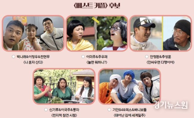 이에 각양각색 개성으로 똘똘 뭉쳐 시청자들에게 웃음을 줬던 베스트 커플상 후보들의 매력을 분석해봤다.