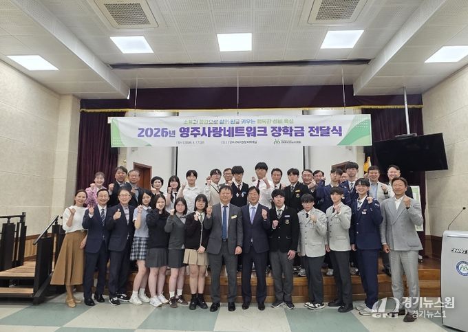 [경기뉴스원/경기뉴스1] | 재경 영주 출신 재계, 관계, 법조계, 학계, 언론계 인사들의 모임인 영주사랑네트워크 (회장 이종오)가 4월 17일 영주교육지원청에서 영주지역 9개 고등학교 학생 20명에게 1,000만원의 장학금을 전달했다.