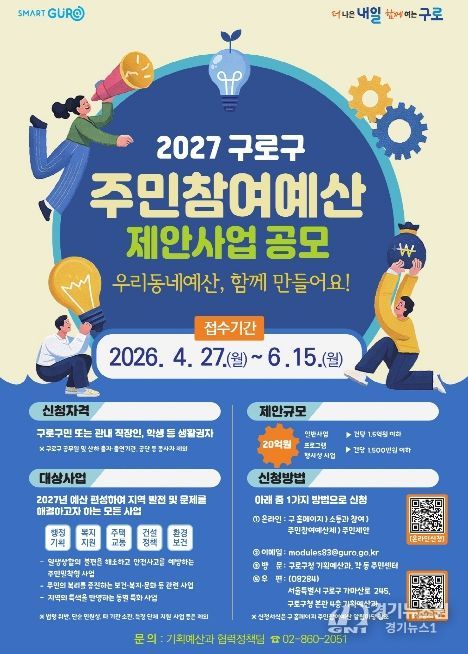 [경기뉴스원/경기뉴스1] | 구로구가 2027년 예산에 편성할 ‘주민참여예산 사업 공모’를 4월 27일부터 6월 15일까지 진행한다.