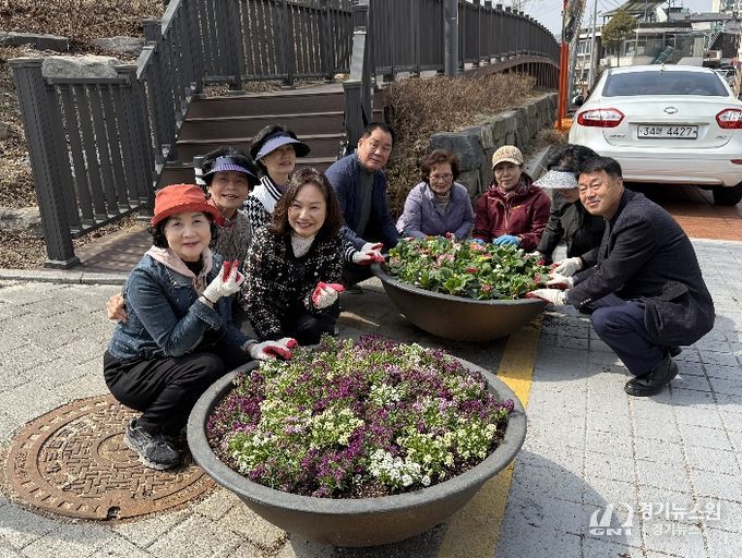 [경기뉴스원/경기뉴스1] | 수원시 장안구 연무동 주민자치회는 지난 17일, 연무동 내 아름다운 꽃동산 조성을 위한 첫걸음으로 퉁소바위공원 입구에 꽃을 식재했다고 밝혔다.