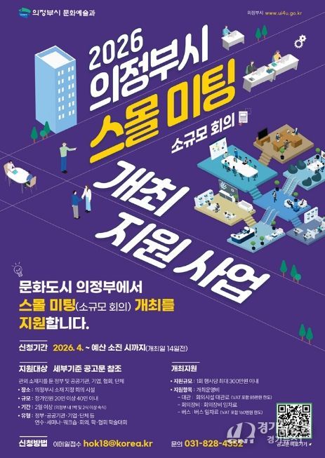 [경기뉴스원/경기뉴스1] | 의정부시는 관외에 소재지를 둔 기관 및 단체 등을 대상으로 ‘2026 의정부시 스몰미팅(소규모 회의) 개최 지원사업’을 추진한다.