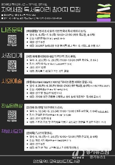 [경기뉴스원/경기뉴스1] | 인천광역시교육청화도진도서관은 지역 독서 문화 활성화를 위해 ‘지역서점 연계 독서동아리’ 참여자를 모집한다고 20일 밝혔다.