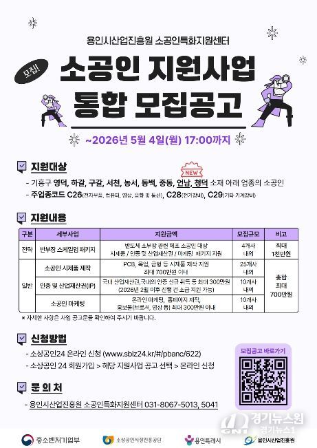 [경기뉴스원/경기뉴스1] | 용인시산업진흥원 소공인특화지원센터는 용인시 소재 소공인의 경쟁력 강화를 위해 소공인 지원사업을 본격 추진하고, 참여기업 총 49개사를 모집한다고 밝혔다.