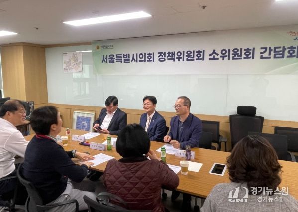 [경기뉴스원/경기뉴스1] | 김용일 서울특별시의회 정책위원장(국민의힘, 서대문4)은 4월17일 오전 11시 정책위원회 2소위원회 간담회를 열고 청년주택 관련 주제를 과제로 선정한 2소위원회 위원들과 다양한 연구방안 등을 논의했다.