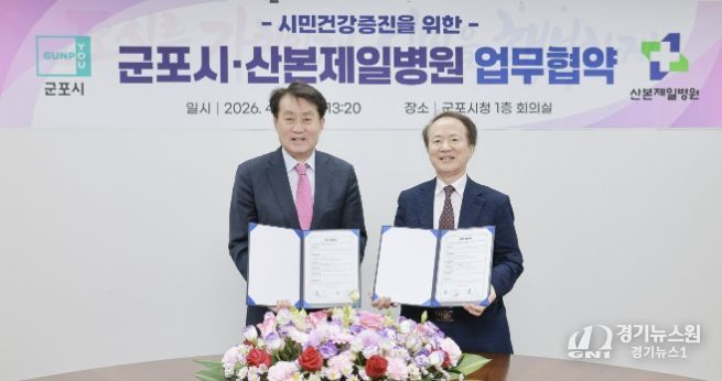 [경기뉴스원/경기뉴스1] | 군포시는 4월 20일 시청 1층 회의실에서 산본제일병원과 ‘시민 건강증진 및 의료서비스 질 향상을 위한 업무협약(MOU)’을 체결했다.