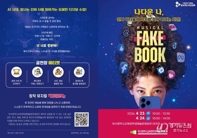 [경기뉴스원/경기뉴스1] | 부산광역시교육청학생예술문화회관은 오는 23일과 24일 회관 대극장에서 초·중·고 학생 1,200여 명을 대상으로 ‘페이크북’ 공연을 개최한다.