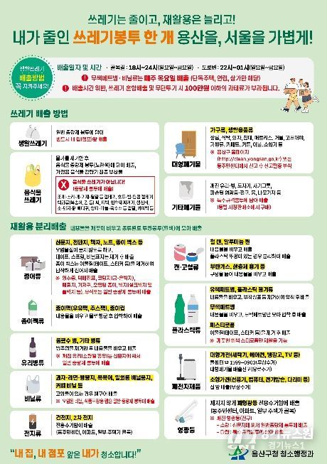 [경기뉴스원/경기뉴스1] | 서울 용산구가 주민 누구나 생활쓰레기 분리배출 정보를 쉽게 이해하고 실천할 수 있도록 주요 배출 정보를 한 장에 담은 안내문을 제작·배포한다.