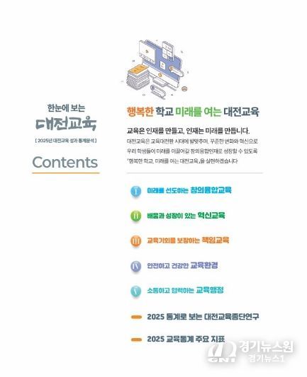 [경기뉴스원/경기뉴스1] | 대전교육과학연구원 대전교육정책연구소는 2025년 대전교육 주요 정책의 성과를 종합적으로 분석한 ‘한눈에 보는 대전교육’을 발간했다고 밝혔다.