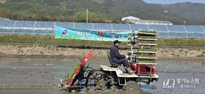 [경기뉴스원/경기뉴스1] | 양구군이 21일 오전, 양구읍 학조리에서 올해 첫 모내기 행사를 진행하며 본격적인 영농철의 시작을 알렸다.