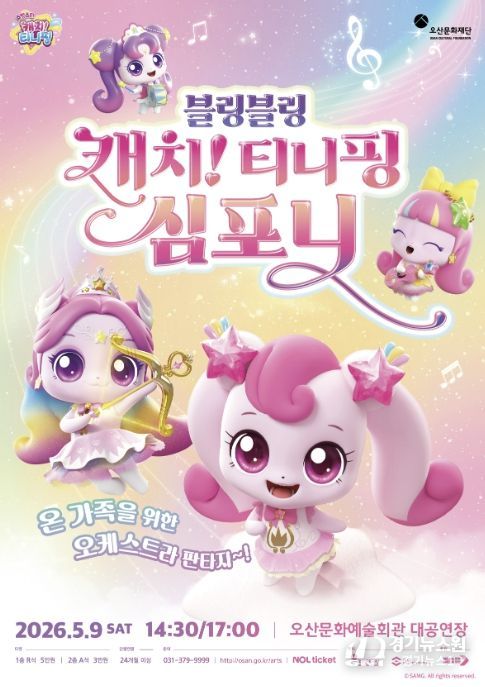 [경기뉴스원/경기뉴스1] | 오산문화재단은 어린이날을 맞아 온 가족이 함께 즐길 수 있는 오케스트라 공연 ‘블링블링 캐치! 티니핑 심포니’를 선보인다고 밝혔다. 이번 공연은 인기 애니메이션 ‘캐치! 티니핑’ 시리즈의 OST를 오케스트라 라이브로 감상할 수 있는 무대로, 어린이뿐 아니라 가족 단위 관람객들에게 특별한 문화 경험을 제공할 예정이다.